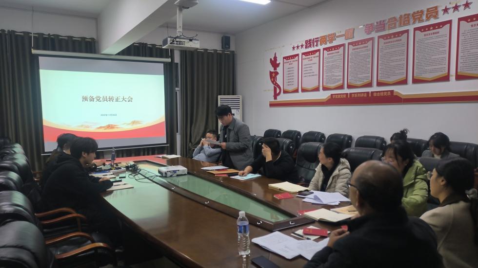 会议进行第三项议程:召开预备党员转正大会。会议严格按照程序,清点并报告了到会人数符合规定要求。预备党员舒可钦同志宣读转正申请,汇报了自己在预备期内的思想、学习和工作表现。其入党介绍人熊章正、吴珂同志分别介绍了舒可钦同志在预备期的教育和考察情况,均同意其按期转正。经与会党员讨论和无记名投票表决,大会一致同意舒可钦同志按期转为中共正式党员。该同志随后作了表态发言,表示将以此为新起点,更加严格要求自己,履行党员义务。