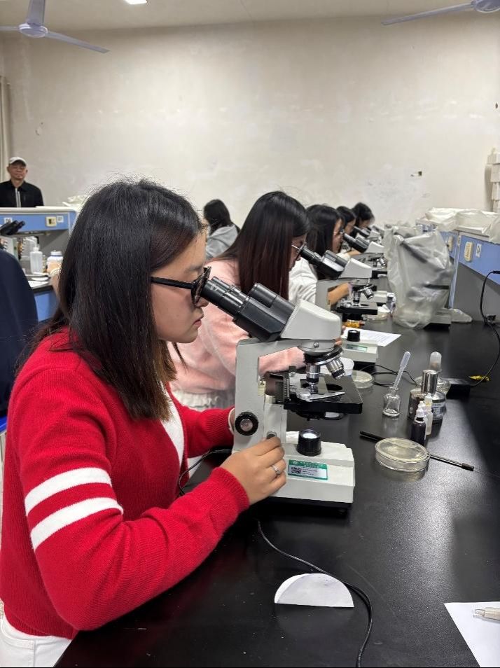 赛事紧扣生物产品质量控制的核心环节,重点考核“细菌染色鉴别”这一关键技术。大赛现场,24级生物制药技术专业的参赛者们沉着冷静,严格遵循标准作业程序,从菌落挑取、涂片制备到革兰氏染色及镜检观察,一系列操作娴熟而规范。裁判组依据行业标准,对操作细节与结果判读进行了细致考评。