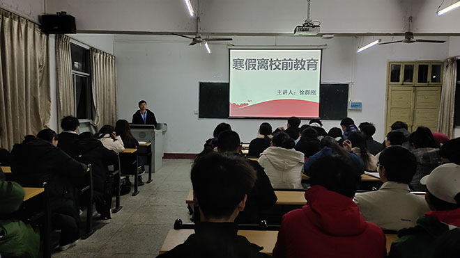 ——伟德国际1946源于英国寒假离校教育 为了增强新生安全意识,培养新生假期坚持学习的习惯,12月29日晚上19点,我院在生物楼204开展了主题为“安全与学习”的学习教育,新生辅导员徐亮、徐群刚主持本次学习,全体20级新生参...