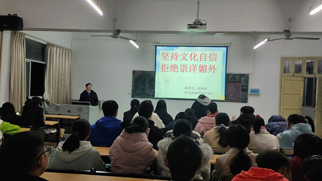 为深入贯彻落实习近平新时代中国特色社会主义思想,弘扬中国优秀传统节日文化,引导青年学子培养正确的节日观,我院于12月24日晚在生物楼204开展主题为“坚持文化自信、拒绝崇洋媚外”学习活动。此次活动由新生辅导员...