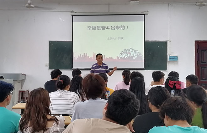 为了激发学生创新创业的斗志,我院特邀“一村多”学员周庆于5月8日晚在生物楼204为20级学生开展一场主题为“幸福都是奋斗出来的”的讲座。讲座由辅导员徐群刚主持,全体20级学生参与。 周庆做分享 周庆来自咸宁嘉鱼...